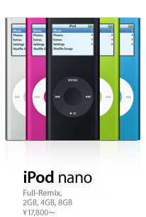 先日,実物を初めて見たのですが,結構かわいいかも..... 自分はiPodを持っているのでいらないけれど,クリスマスプレゼントには,価格的にもお手ごろで良いかも知れません. 以前,クリスマスの時期には,iPodはほとんど品切れとなっていたので,そろそろ買ってしまおうかな? Apple Storeのホリデーギフト アップルストア限定で販売している,真っ赤なiPod nanoも結構いいけど,これは自分用に欲しいです. 先週末,○○バシカメラにて,ブロードバンドインターネットの契約を条件に,iPod nano (2GB)を980円にて購入できるキャンペーンをやっているのを発見!